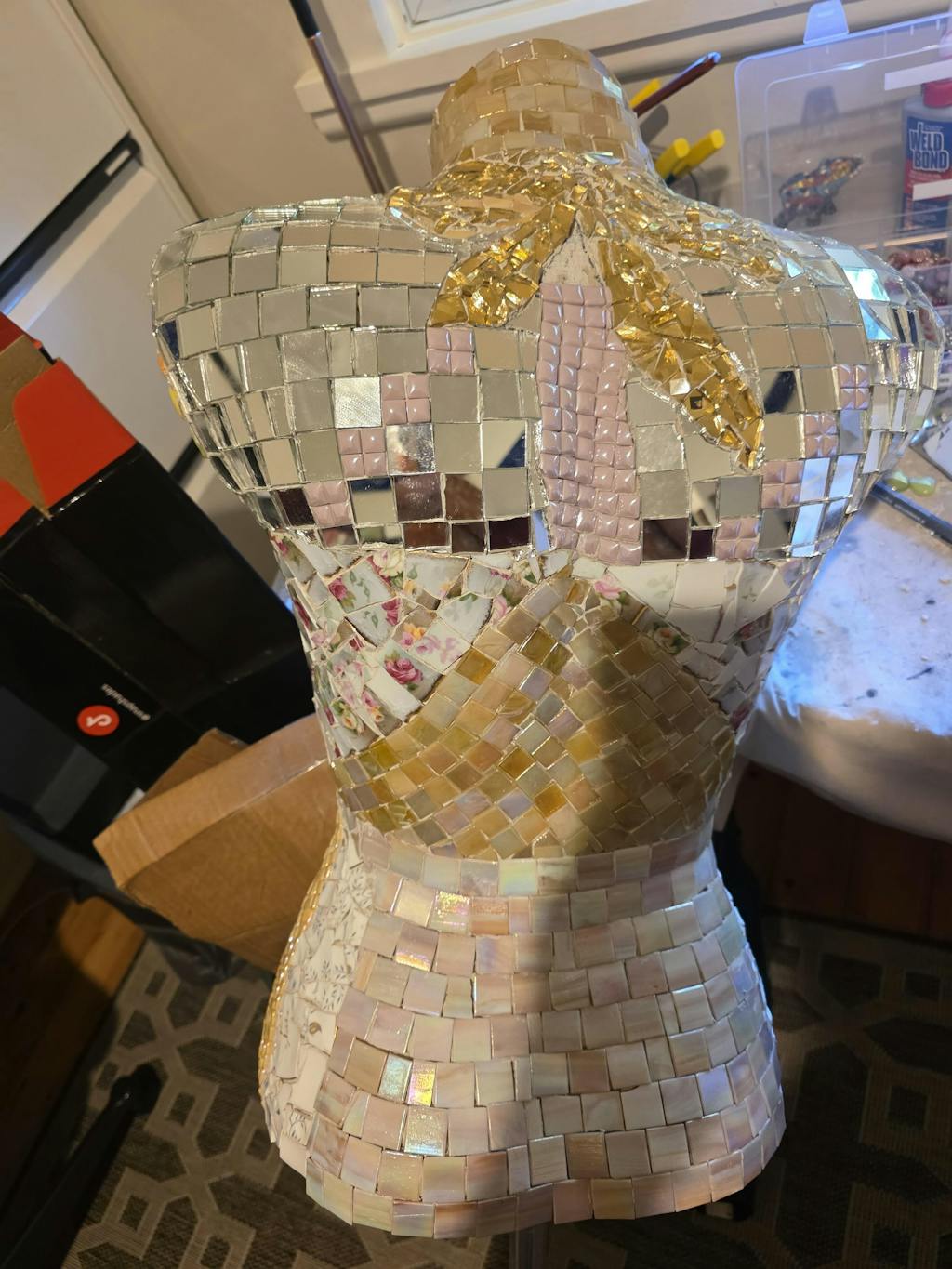 Perfect for creating mosaic table tops, decorative vases, stunning wall art, artistic mirrors, or beautiful indoor installations. The diamond gold finish adds luxurious sophistication and brilliant sparkle to any artistic creation, making it ideal for elegant indoor art pieces and decorative installations.
